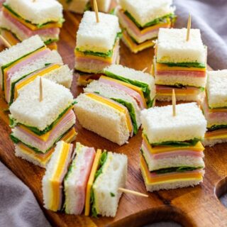 Looking for more sandwich appetizers? Mini cucumber sandwiches and ham & pickle roll ups are also delicious appetizer sandwiches so why not give them a go?
