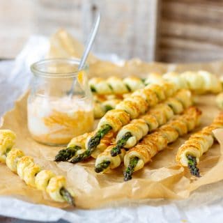 Parmesan asparagus pastry twists are cool looking appetizers ready in less than 30 minutes. Wrap asparagus in puff pastry, sprinkle with Parmesan, bake and enjoy!
